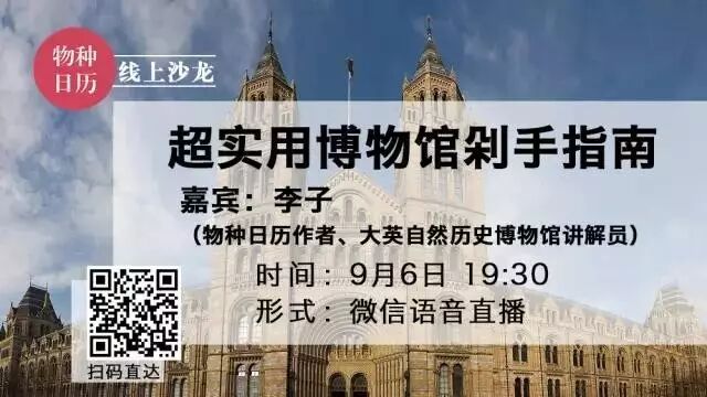 昨晚,我们的线上沙龙有幸邀请了伦敦各大博物馆钉子户、大英自然历史博物馆志愿者、物种日历作者@李子 ,带着大家逛遍各大博物馆,带来超实用的博物馆剁手指南!长按二维码可以回顾精彩哦