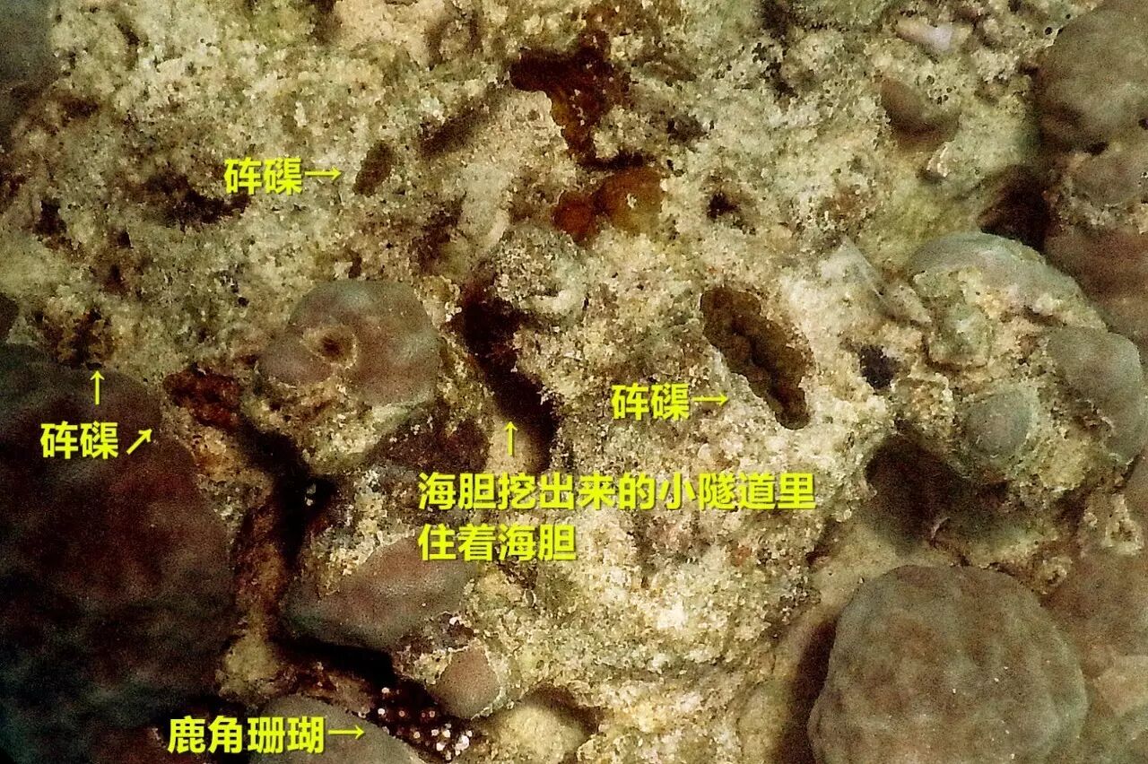 “前人建房后人乘凉”——滨珊瑚提供基础,海胆加工创造,珊瑚鱼入居——在有限的空间里提高空间复杂度的栖居链(inhabitation chain),是珊瑚礁生态系统生物多样性的关键之一。