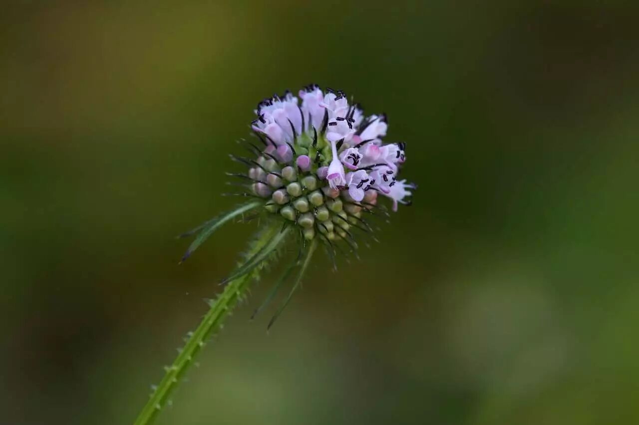乍看之下,日本续断(Dipsacus japonicus)跟菊花非常相像,看起来似乎还有一个毛绒绒的花序,伸手的欲望再次占了上风。结果只能是,“哎呀,这玩意儿竟然是扎手的”。没错,这就是日本续断的免打扰模式。
