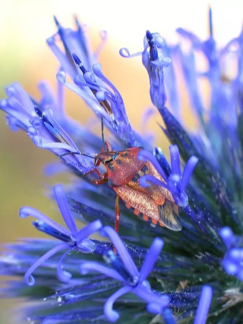 那些扎手的刺其实并不是它们的花朵,而是花朵外面的苞叶。这些苞叶集合起来,就让蓝刺头有了一个圆乎乎的代表特征。