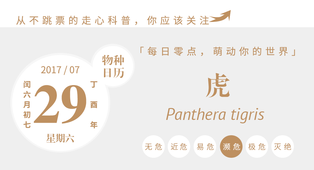 在世界老虎日,除了文字,我们还邀请大家观看影片近距离地了解虎。今天10点到20点,在北京朝阳侨福芳草地D座10层侨福讲堂将上映系列野生动物保护纪录片。报名成功的朋友们,不见不散!<忘记自己报名场次的时间?快戳这里回顾>