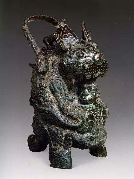 下图是一尊商代虎卣[yǒu],原名虎食人卣。对于它历来有很多种解释,有人认为它是虎神在吃人,有人则认为是虎神在守护人类,还有人认为是人类被献祭给虎神。但早期文明对虎又敬又畏,甚至愿意将生命融入虎的神性,从这个角度考虑,这几种说法似乎又不太矛盾了。