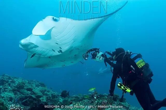 与潜水者同游的蝠鲼,怎么忍心伤害它?图片:Doug Perrine / NPL