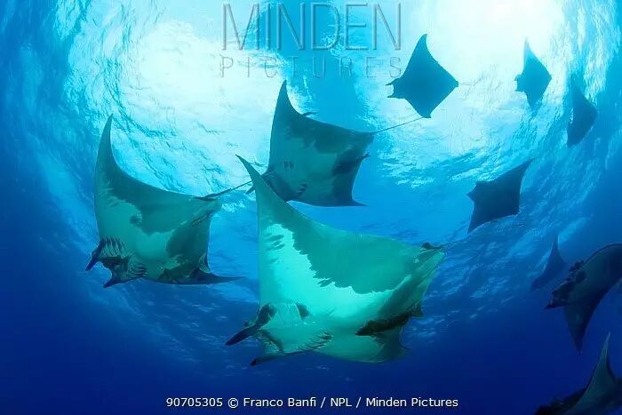 成群的褐背蝠鲼(Mobula tarapacana)。图片:Franco Banfi / NPL