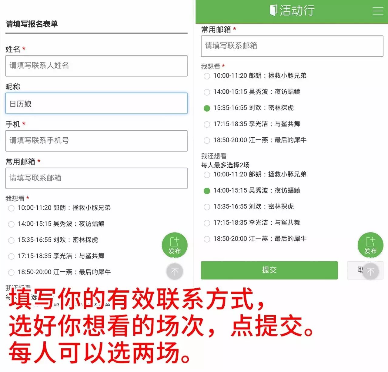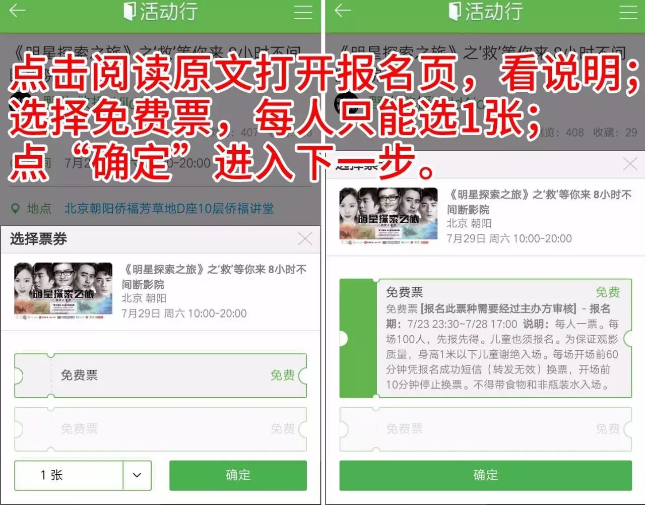 本次免费观影为公益活动,每人最多可选择2场观看。现场座位有限,需要提前预定。