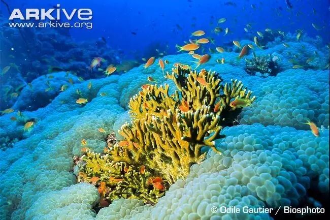 和鹿角珊瑚一起构成珊瑚礁的大群泡囊珊瑚。图片来源见水印
