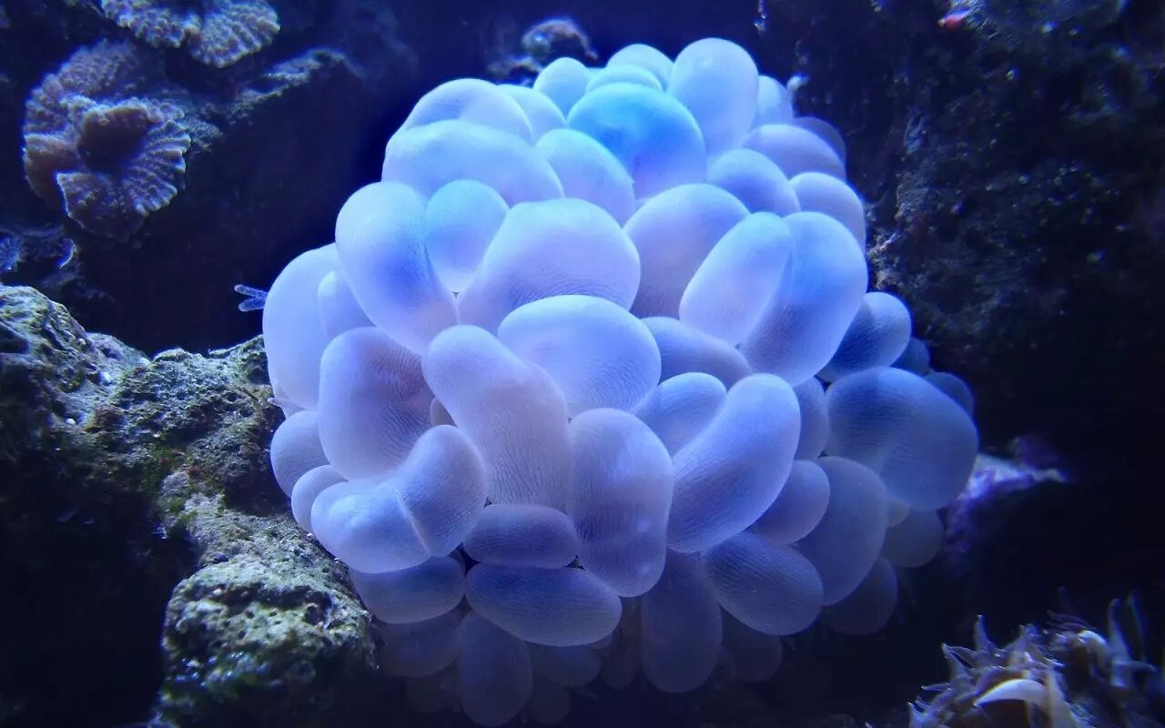 白天,泡囊珊瑚会吹起泡泡,煞是可爱。到了晚上,它们不仅会收起鼓起的囊胞,还会伸出肉质的、布满刺细胞的触手,以捕食者的形象重新登场,开始捕食海水中的浮游生物。