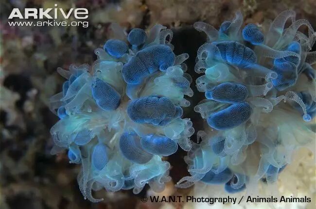 泡囊珊瑚分布在太平洋-印度洋域,在中国南海也曾有发现。它有着“水下葡萄串”的特别形象,若是在白天的潜水中遇到,相信是一见难忘。夜潜,可就不一定了。因为,泡囊珊瑚白天、夜里可不是同一般面貌。