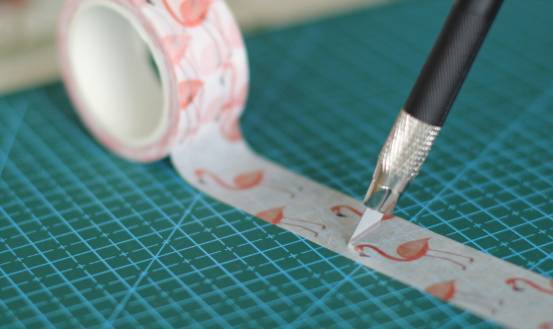 做拼贴的时候,用笔刀根据需要切割下胶带图案轮廓,依次组装粘贴就可以了。