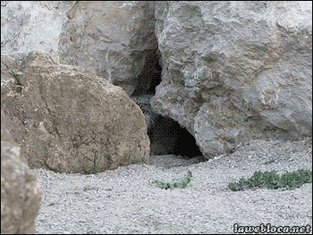 狐狸跑过了一堆大石头,停下来,晃晃耳朵,皱了皱鼻子。他慢慢退回来,往岩石缝里张望,看见一对圆圆的眼睛,还有猫特有的鼻头。