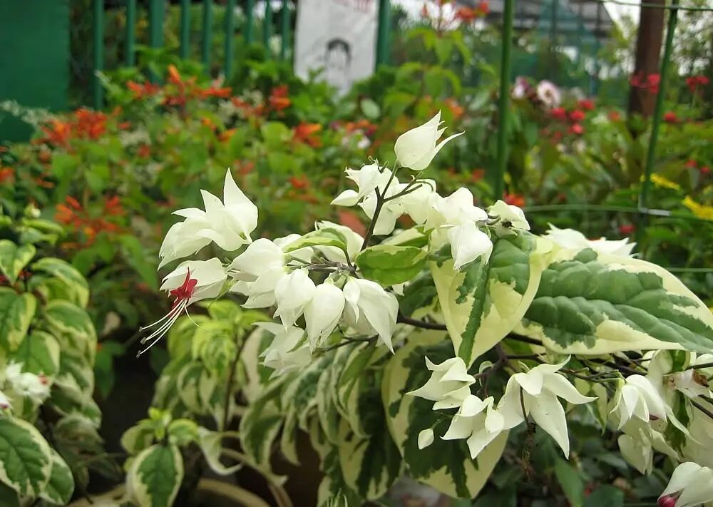 在非洲原产地,龙吐珠是四季常绿的,到了温带地区会以落叶的方式度过冬天,它是一种攀援灌木,种的时候必须设立金属网等支撑物,枝条幼嫩时四棱、叶对生,暗示着它和唇形科的关系。