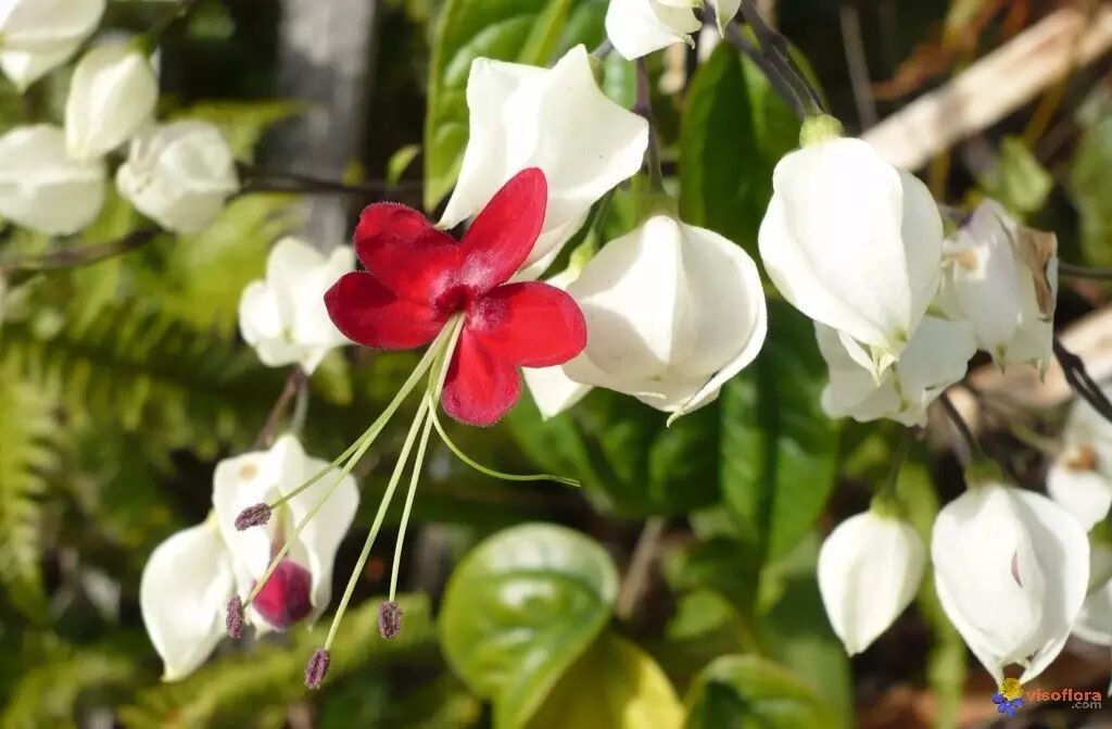 龙吐珠的花,红色是花瓣,白色是萼片。图片: plantsrescue.com