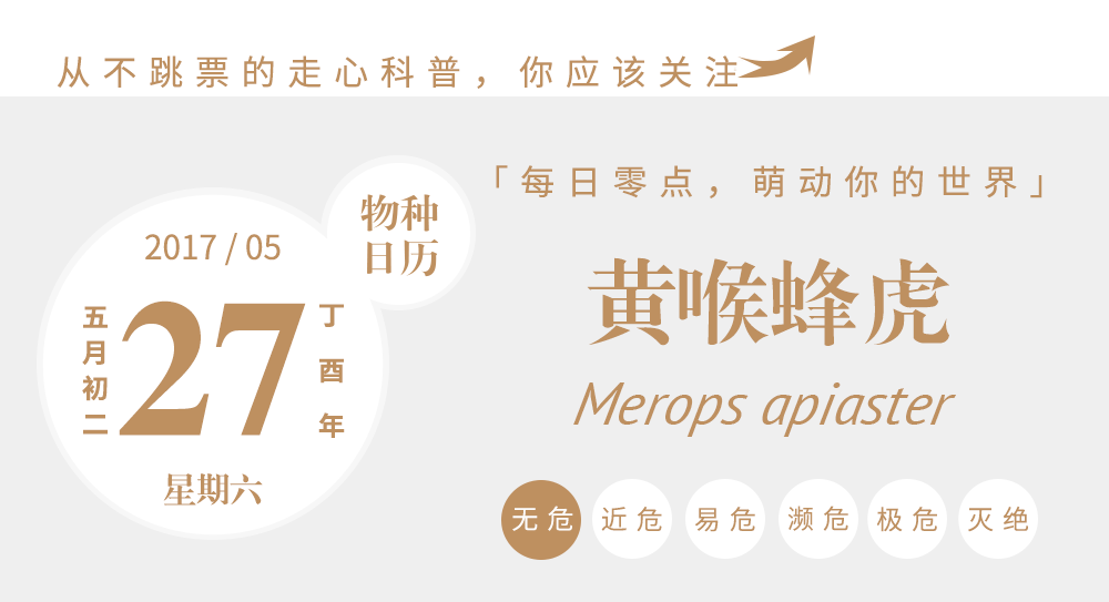 今天的日历主角也是这样一种以“虎”为名的动物,黄喉蜂虎Merops apiaster。