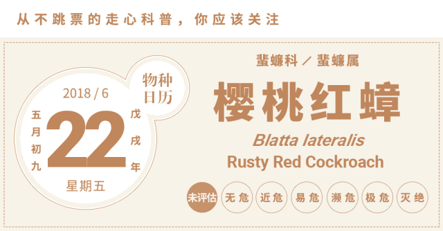 本文作者扬言蟑螂是他最喜欢的动物,还曾经给物种日历写过一整周各种各样的小强!你觉得自己承受得住,就向物种日历微信公众号回复“小强周”吧。