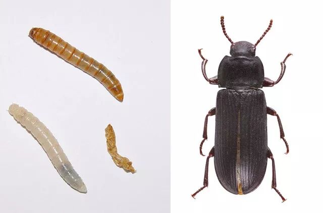鞘翅目的面包虫,幼虫常以仓储粮食为食。图片:Mnolf & Didier Descouens / wikimedia