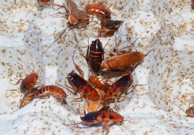 樱桃红蟑的饲养也相当容易,找一个塑料整理箱丢一摞蛋托,放上狗粮和水盆,给予足够的温度,它们就会愉快地繁衍起来。樱桃红蟑并不能攀爬光滑的墙壁,所以只要用有竖直光滑内壁的饲养箱就可以让它们乖乖待着;如果怕内壁不够光滑,涂一层凡士林就可以了。