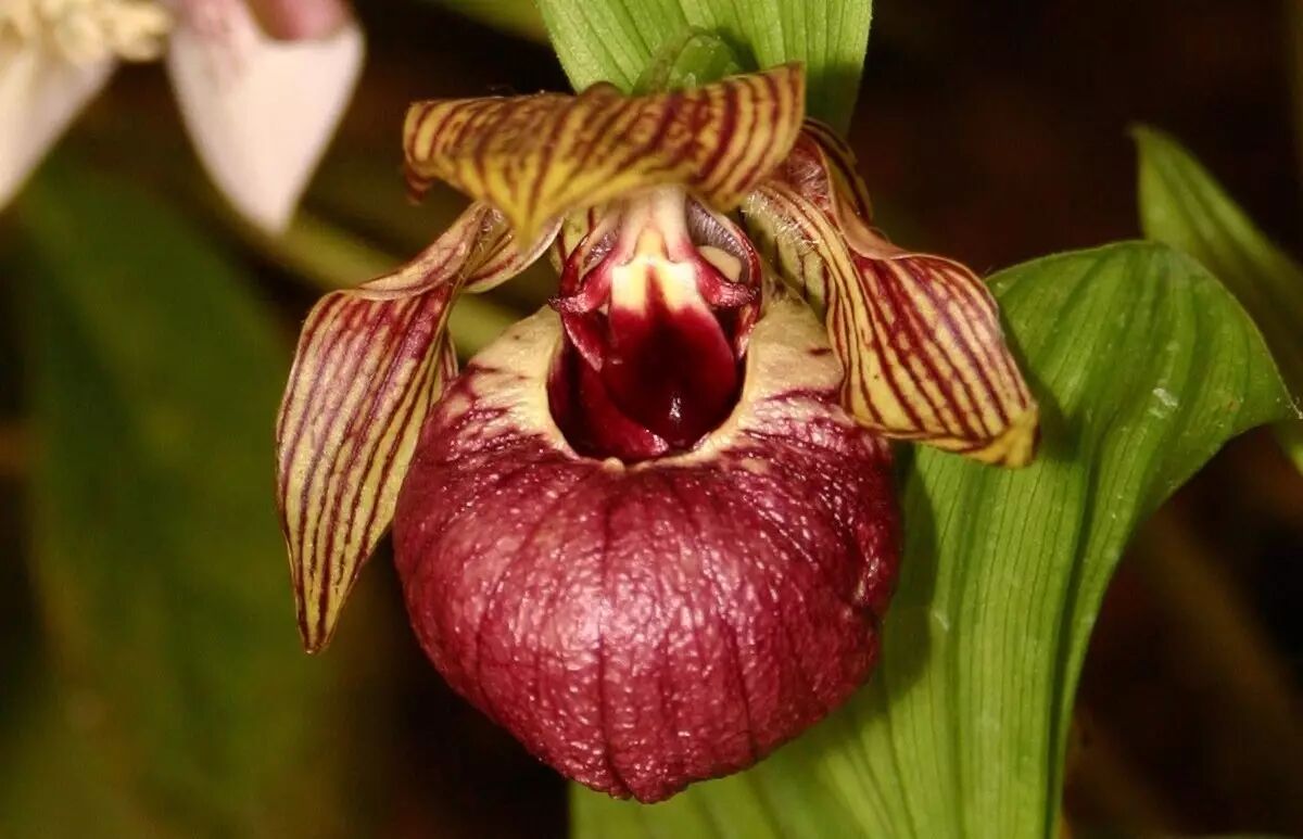 大花杓兰的变种C. m. var. hotei-atsumorianum,看起来很像吃虫子的花朵。图片:Picssr