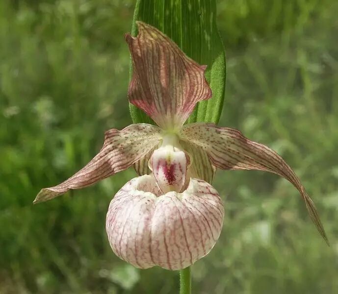 一个杂交品种的杓兰(C. x ventricosum)图片:BerndH / wikipedia