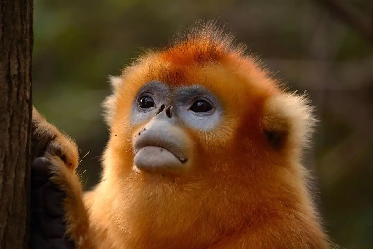 金色的毛发、蓝色的面部是川金丝猴的特征,鼻骨退化也较明显。图片:Brigitte Kreigenhofer / Flickr