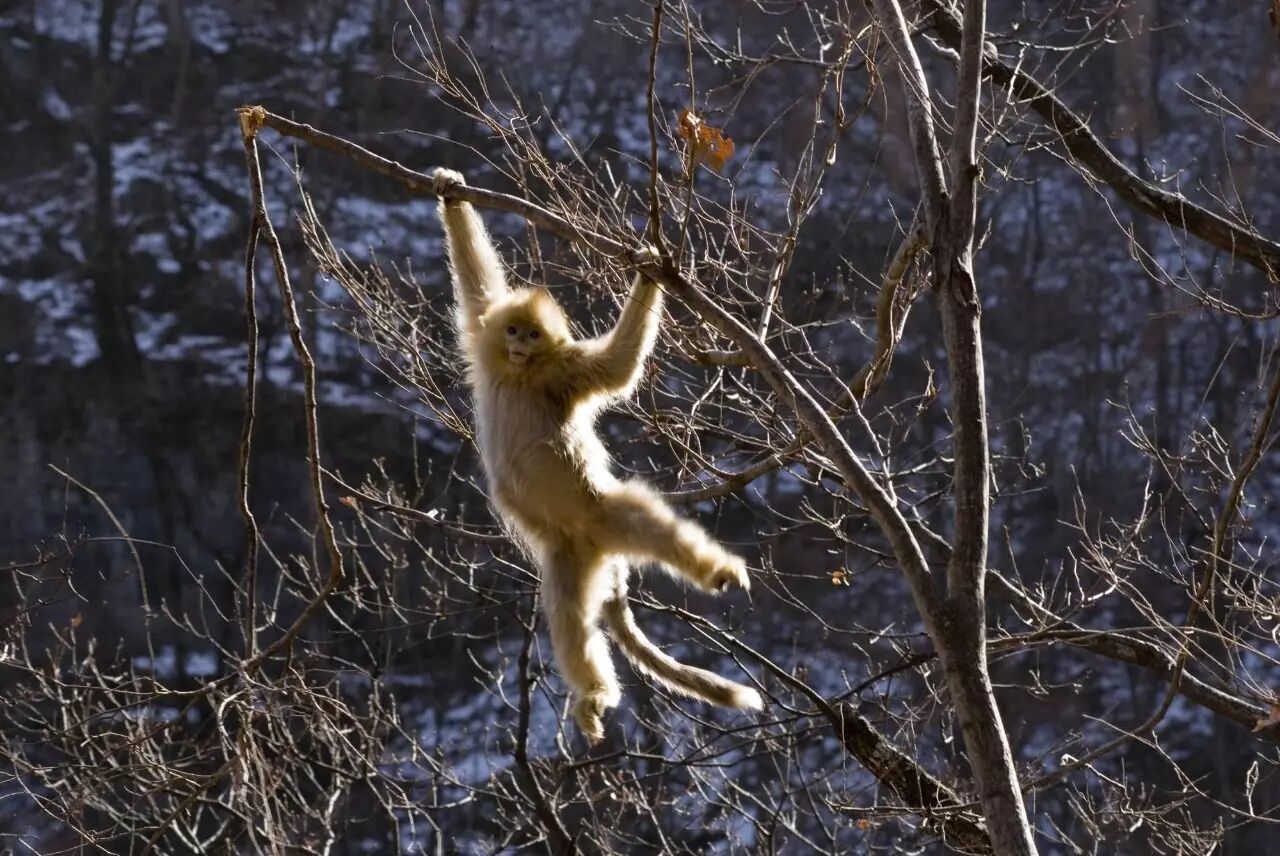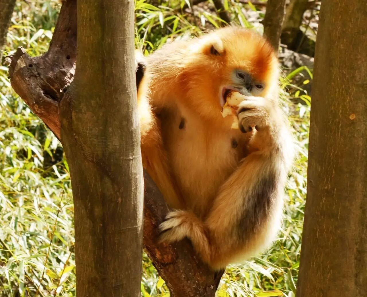 川金丝猴是一种树栖性的动物,大多数的时候它们都是在树上生活的。图片:不认识植物