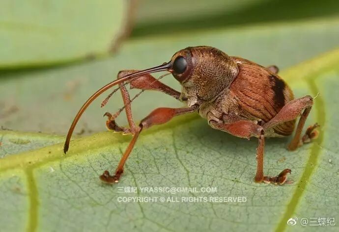 三蝶纪自己用被蛀了的栗子养出来的枹栎象(C. haroldi)。