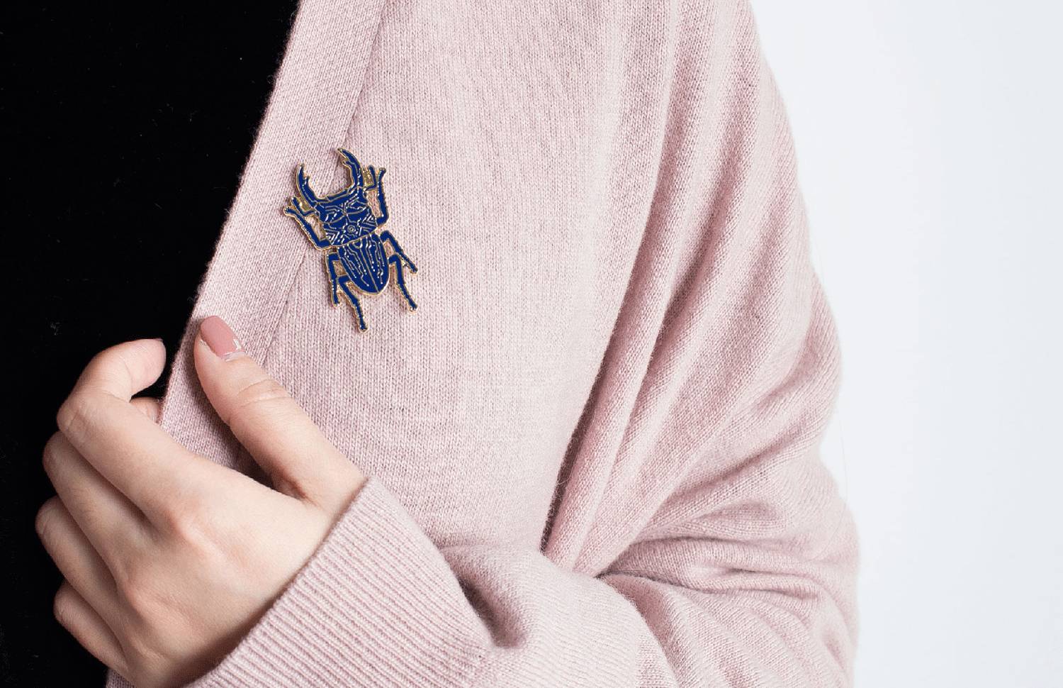 如果你原本严重虫恐,上来就接触真昆虫,既不现实又有风险,那不如选择本文作者三蝶纪老师出品的甲虫饰品: