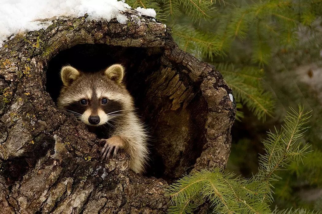 其实个人觉得,浣熊的萌,不是那种毛茸茸软乎乎的呆萌,而是带有几分喜剧色彩的,当然,有人说是贼眉鼠眼倒是也对。杂食性的浣熊什么都吃,可能是世界上最杂食的动物:春天果子少,浣熊们吃肉——毛毛虫、昆虫、小型动物,有时候还贼呼呼地掏个鸟蛋啥的;秋天来了就狂吃坚果,可以多吃出一个自己的体重来过冬。