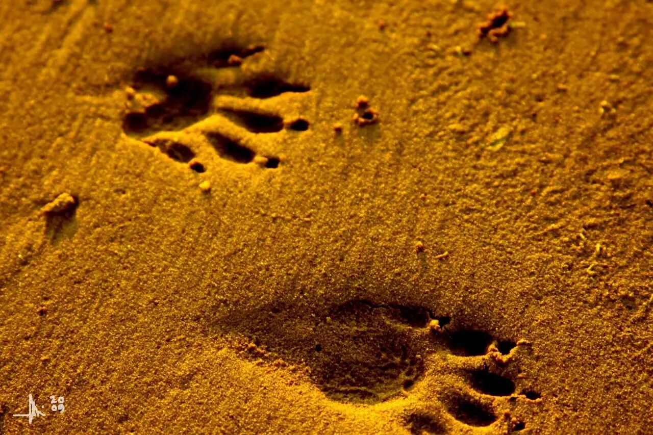 沙地里留下的浣熊爪印。图片:Junga / flickr
