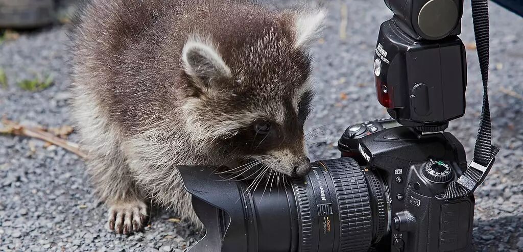正在玩弄相机的浣熊,然而这个确实不会玩。图片:Pe_ha45 / flickr