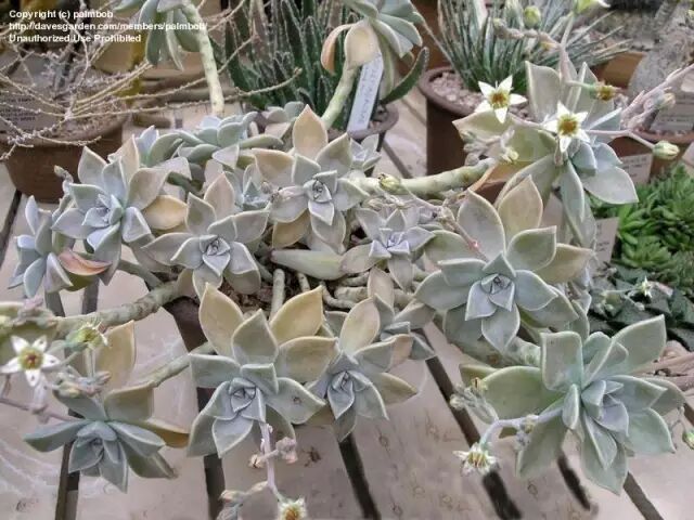 胧月原产于遥远的墨西哥,很早就被华侨从南洋引入国内,在我国南部地区归化了。胧月学名Graptopetalum paraguayense,是景天科风车草属的多肉。风车草属大家不陌生,常见的华丽风车、银天女等多肉,都是这个属的。