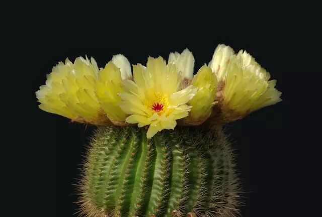 有些朋友会注意到,仙人掌的刺长在一个毛茸茸的部位,这地方叫“刺座”,相当于其他高等植物茎上的节。一般植物在节上会长出新叶、枝或是花,同样的,仙人掌的刺座会长出刺和花苞,不同种类的仙人掌刺座形态均不相同。刺座是仙人掌独一无二的结构,这使得它们自成一派,和其他多肉植物截然不同。