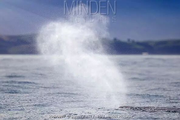 抹香鲸喷出的水柱。图片:Minden Pictures