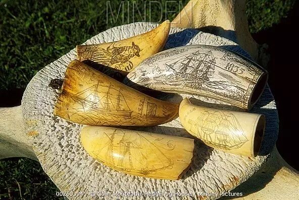 抹香鲸牙齿制成的工艺品。图片:Minden Pictures