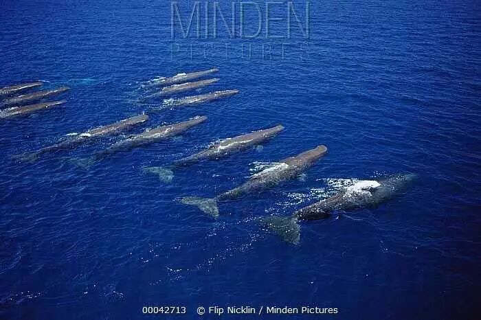 巡游海面的抹香鲸群。图片:Minden Pictures