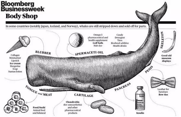 各种鲸鱼制品,左划可看提炼鲸油(重口预警)。左图:lifestyle.inquirer.net;右图:Minden Pictures