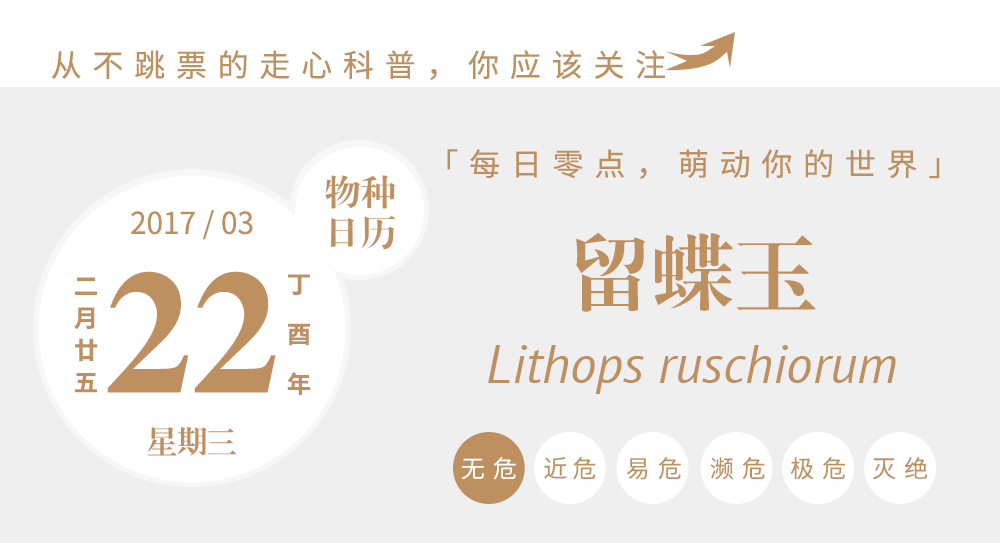 说起留蝶玉Lithops ruschiorum,你可能一脸懵逼,但提起生石花(Lithops),估计无人不知无人不晓。没错,留蝶玉正是生石花属的。