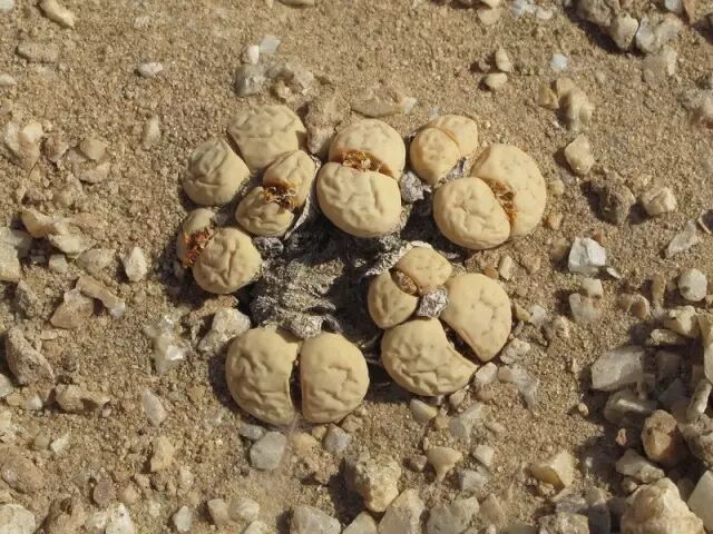在凡人看来,留蝶玉的外貌像是造物主的恶趣味,但人家并非故意以屁股见人。它们的家乡纳米比亚终年干旱少雨,它们获取水分,多半是靠从海岸边飘送来的雾气。为了适应严苛的环境,留蝶玉必须最大限度地获取和储存水分。