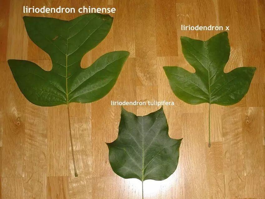 仅供参考的成熟叶片形状对比:左为鹅掌楸,中为北美鹅掌楸,右为杂交鹅掌楸。图片:havlis.cz