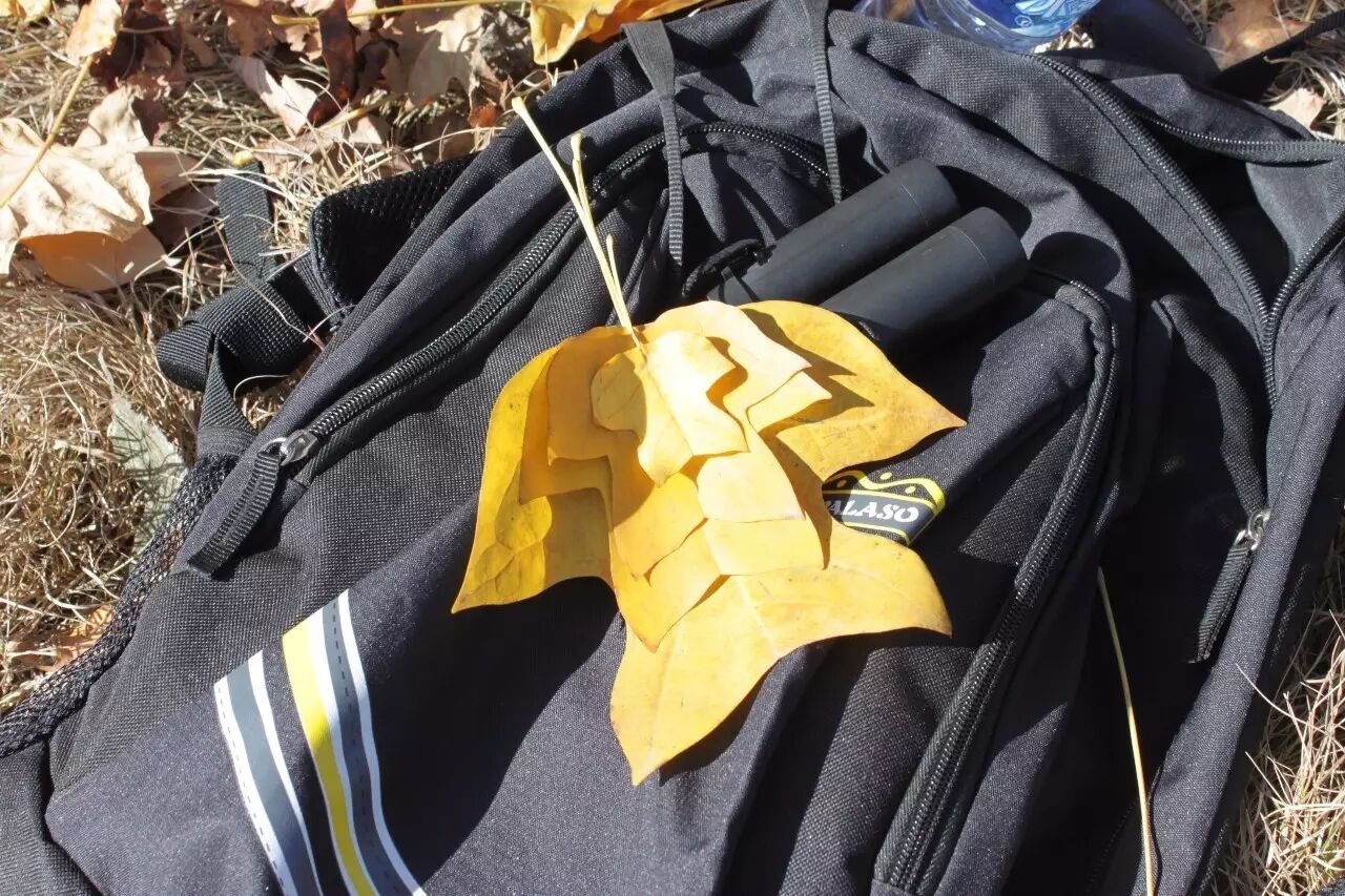 2011年秋北京植物园中的鹅掌楸落叶,一堆大大小小的马褂叠在沉醉于博物学情怀的背包上。来,记住这个长相的叶片,分享认识植物的快乐吧。图片:紫鹬