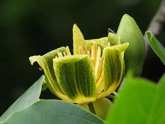 “中华百合树”——鹅掌楸清新脱俗的绿色花朵,这样也能吸引到一只食蚜蝇来访啊。 图片:KENPEI / Wikimedia Commons