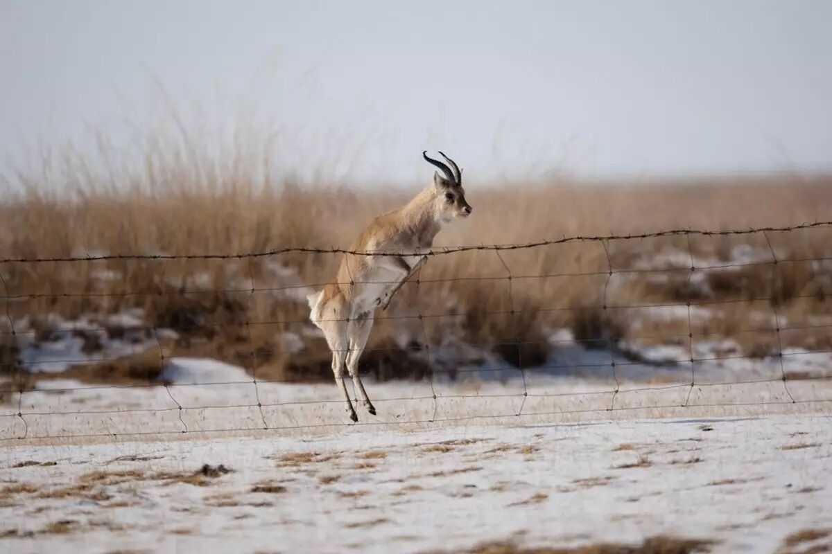 被围栏所困的普氏原羚,藏原羚也面临着同样的问题。图片:CGTN America