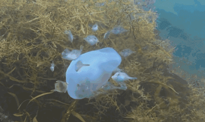 一只正在被一群马面鲀幼鱼围攻啃食的海月水母。图片:YouTube