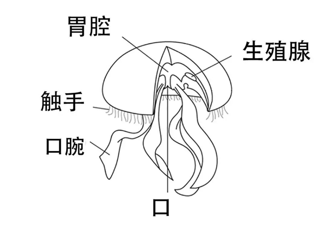 海月水母的身体结构简单示意图。图片:Wikipedia