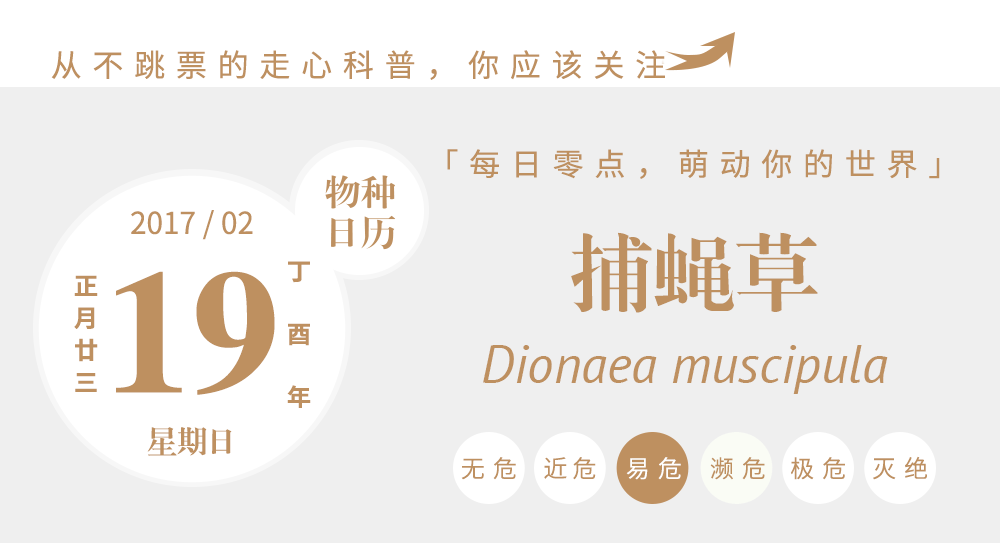 捕蝇草是茅膏菜科中的一个小属,有多小呢?小到这个属中只有捕蝇草这一个种,在市场上能够见到的各种捕蝇草全都只是人工选育出来的品种。虽然看上去很像是热带雨林中的奇怪生物,但是捕蝇草的原产地其实是美国北卡罗来纳州一块很小的沿海区域,1759年才被首次描述。现在在北卡还有野生捕蝇草的自然保护区,在CITES中,野生捕蝇草名列附录II,但种子和组培苗的贸易不受限制。