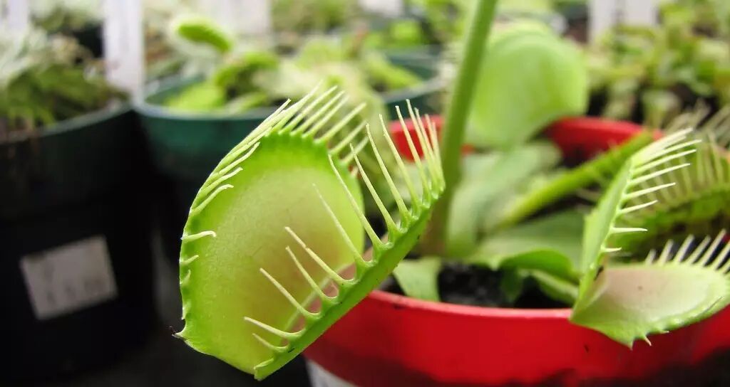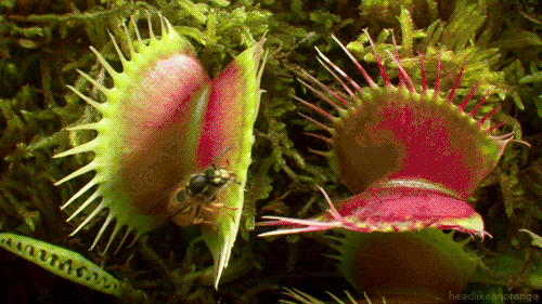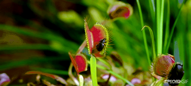 在很多人的想象中,食肉植物是能把欢蹦乱跳的动物牢牢抓住然后慢慢吃掉的奇幻生物,这种印象估计是从恐怖和科幻作品中得来的。实际上,绝大多数食肉植物都不会动,或者只能进行很小幅度的运动,依靠黏液和陷阱守株待兔,能够高速运动的食肉植物只有狸藻、貉藻、花柱草和今天的主角捕蝇草Dionaea muscipula等少数几个类群。