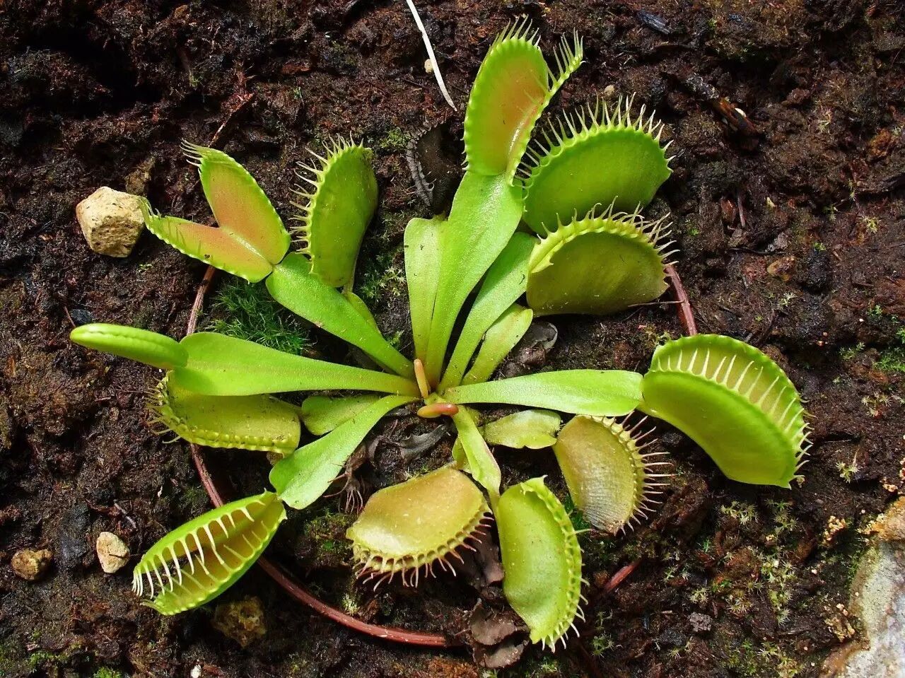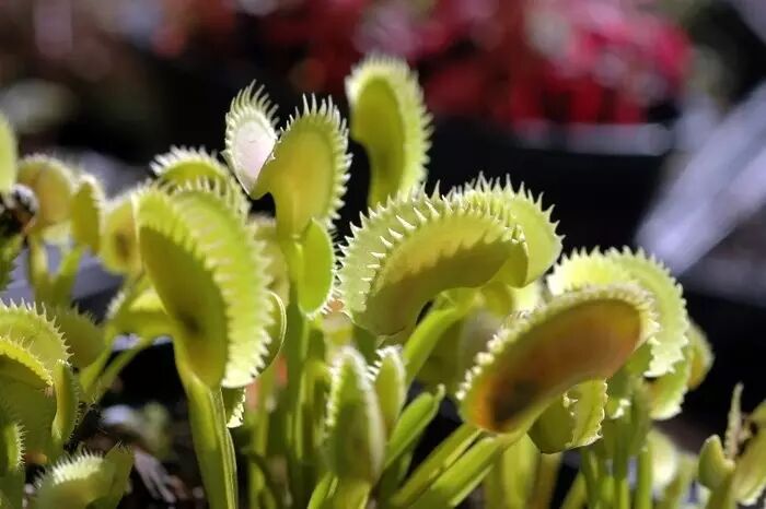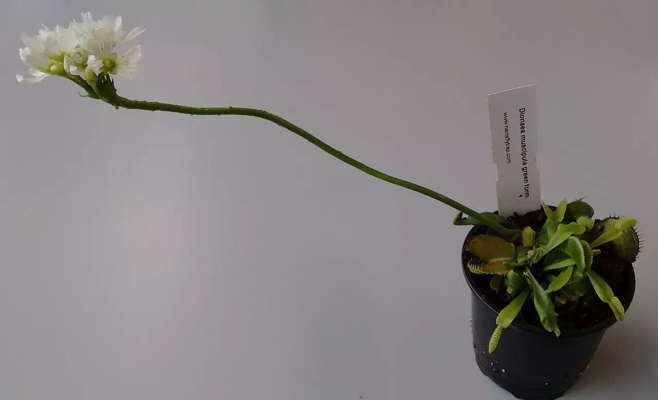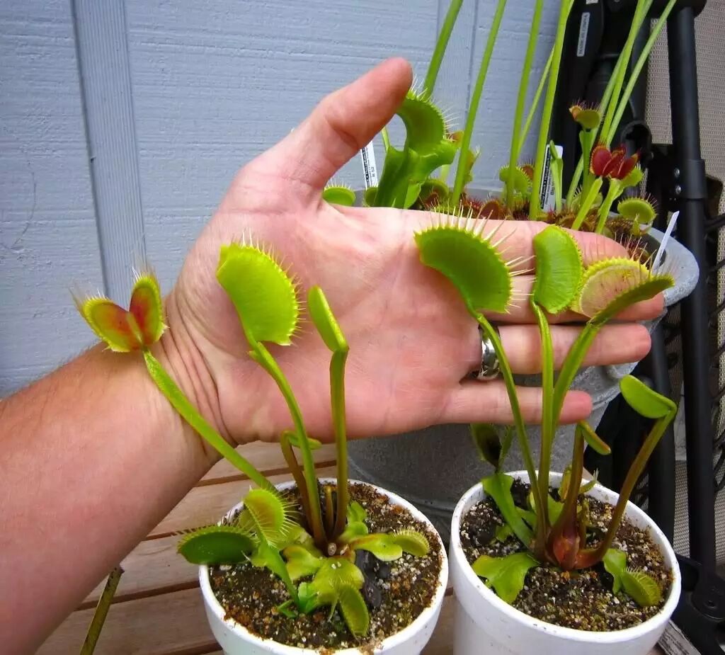 其次是养护。培养的基质不能用土,需要用不含肥料的草炭、水苔、珍珠岩等,基质pH要偏酸性,个人经验是用高品质的纯水苔养就可以了,也不需要施肥。由于捕蝇草有向下扎根的习性,最好选用高一点的花盆。