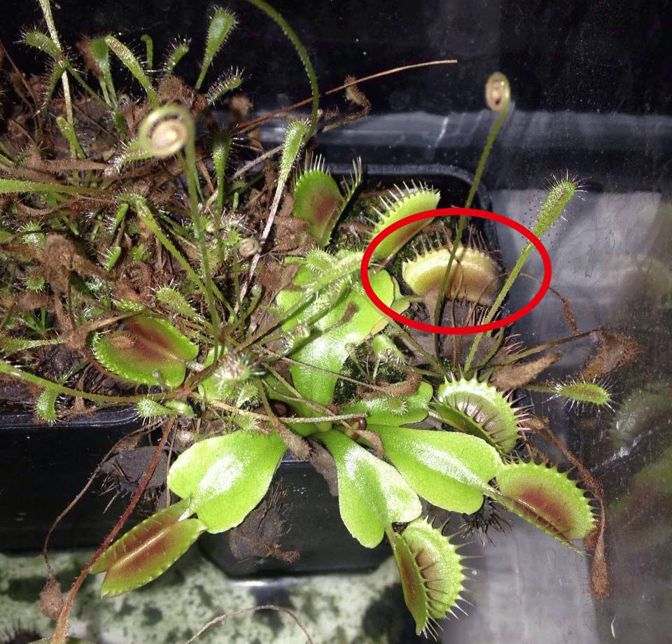 虽然是食肉植物,但是并不需要特地给捕蝇草喂食,一年它自己能抓到一两个虫子就足够了,每个捕虫叶使用两三次以后就会变黑枯萎,喂多了你就没有叶子看了。