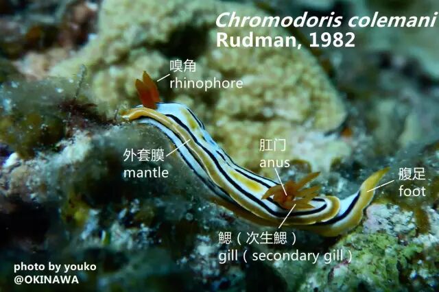 海蛞蝓身体的各部分。图片:@千野youko
