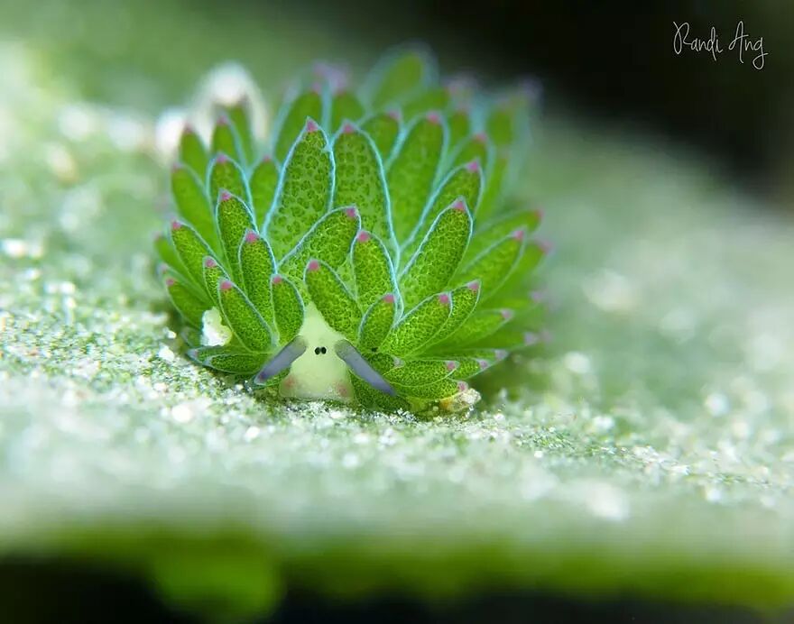 海蛞蝓通常指后鳃亚纲的物种,随便拿出来一个都是萌物。比如这是囊舌目的Costasiella kuroshimae。图片:Randi Ang / Shelter from the Storm
