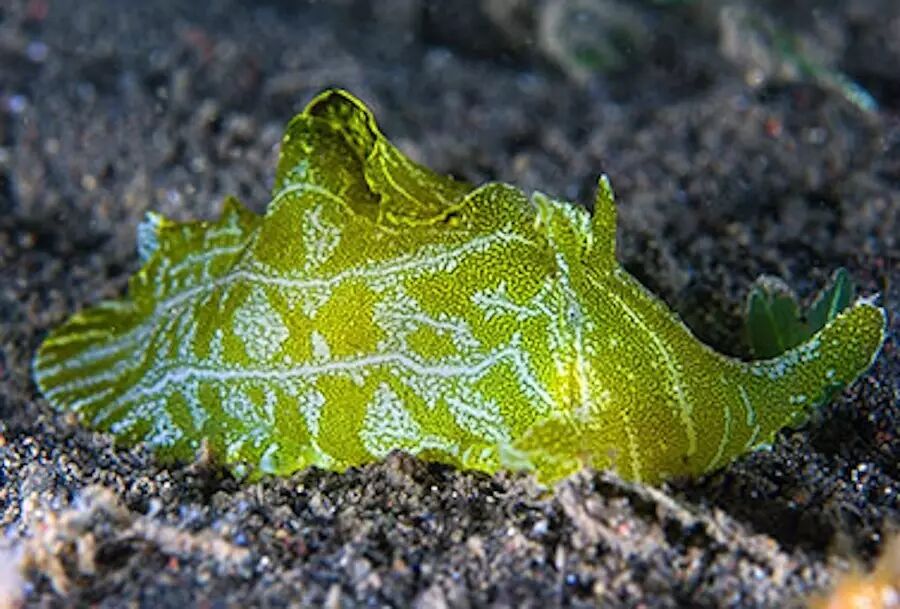 无楯目和裸鳃目的最大区别在于前者不具有裸鳃,比如这只书纹管海兔。图片:Diving 4 Images